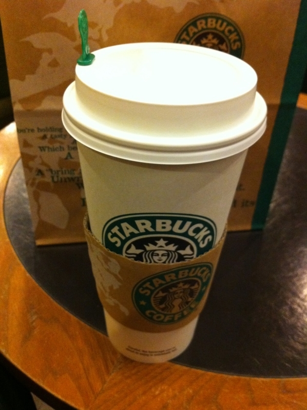2011-01-05 スタバ グルメ #練習用 スタバで、初めてventiの抹茶ティーらてを注文した というのも福袋についていた無料券を使ったため バカでかい、というかこのサイズ日本で普通に飲むにはちょい恥ずかしい 飲み切るのに一日かかるわw